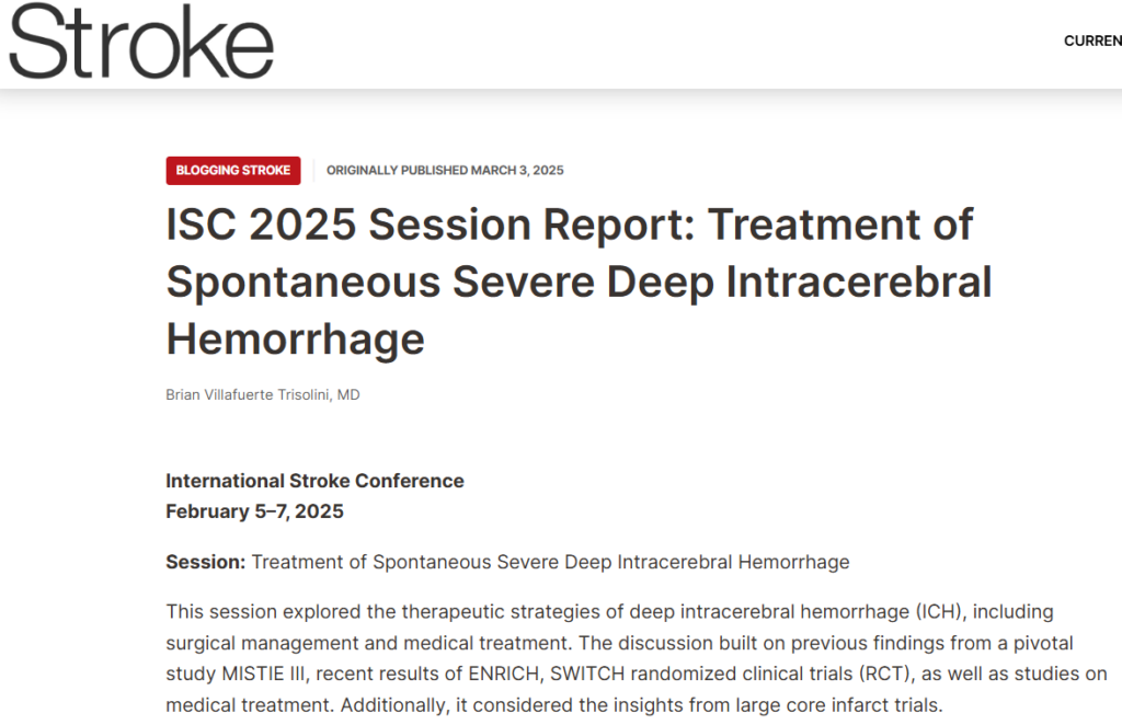 Hémorragie intracérébrale profonde : avancées et défis à l’ISC 2025
